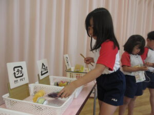 水を大切にすること、残さず食べること、電気をこまめに消すこと、ごみを分別してリサイクルすることなど、一人一人ができるミニエコ活動について教えてもらいましたよ。
