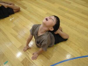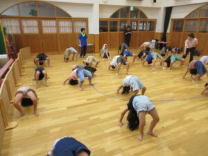 まずは柔軟。こずこずさんとみのりさんの体の柔らかさに感動!!子どもたち、先生たちは…「ゔ~💦」声にならない声が聞こえてきました。