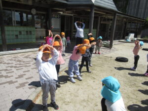 ラーメン体操・たけのこ体操・かえるの体操を踊り、