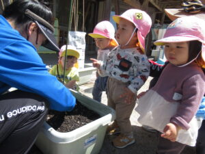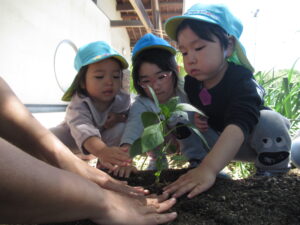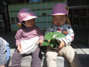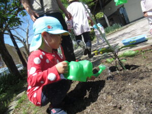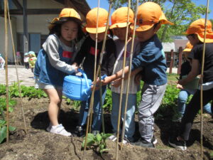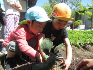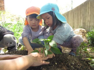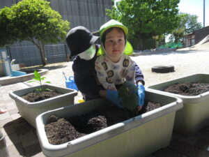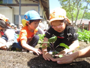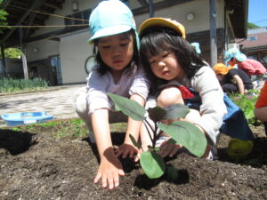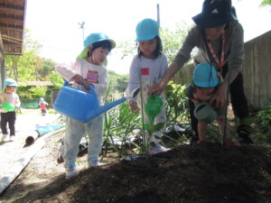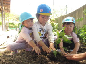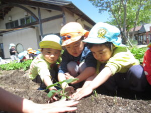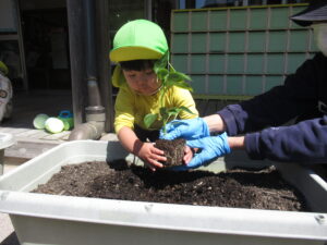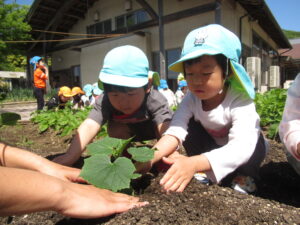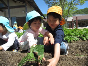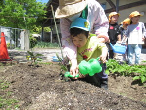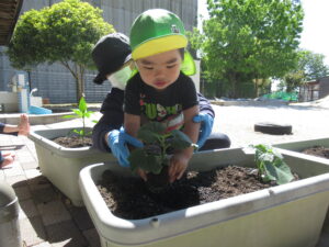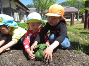 今日もいい天気!全クラスで夏野菜を植えましたよ😊