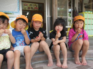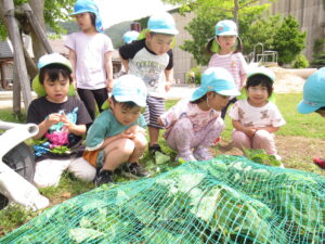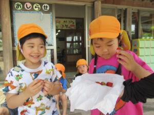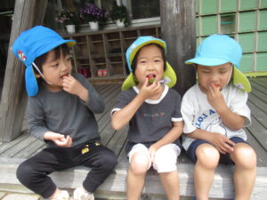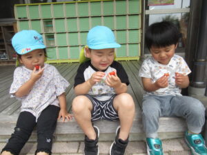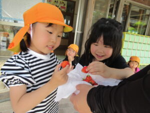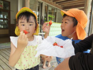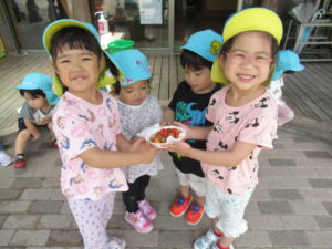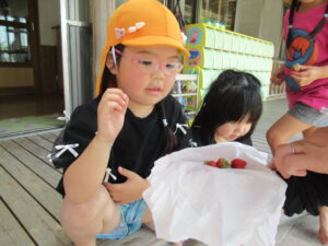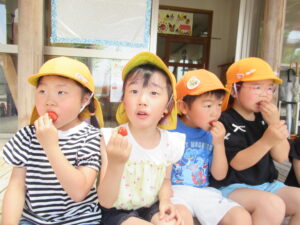 「はやくあかくならんかな~!」とみんなで楽しみにしていた畑のいちご、