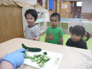 氷ってたのしいね!きゅうりおいしいよ🥒(はな・ほし組)