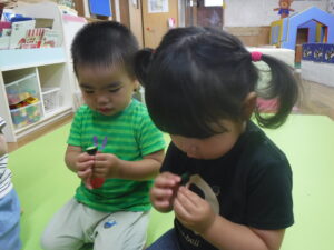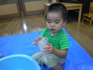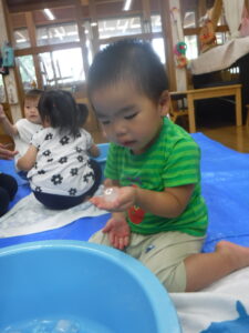 この季節はじめての氷遊び、冷たさやつるつる触感に夢中な子どもたちでしたよ🌟