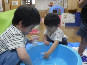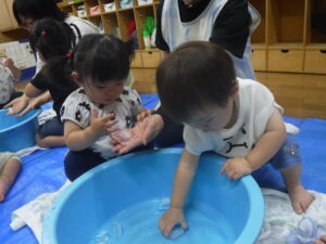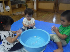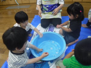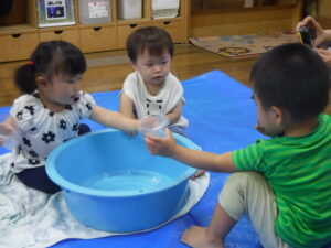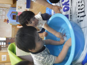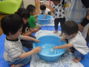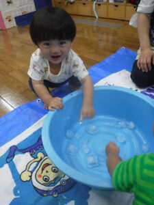 はな組とほし組でひんやり氷遊びをしましたよ!