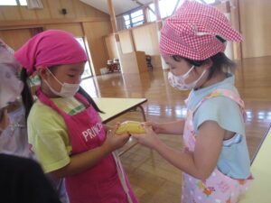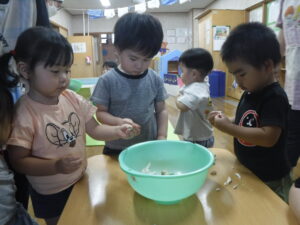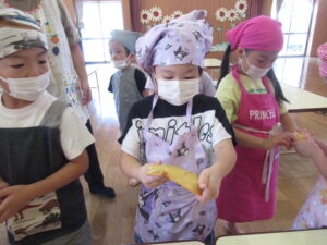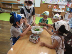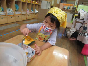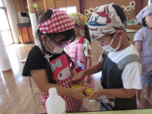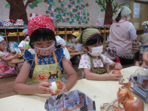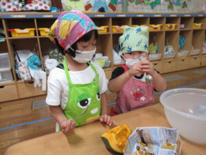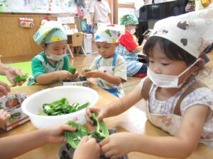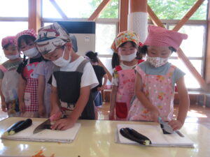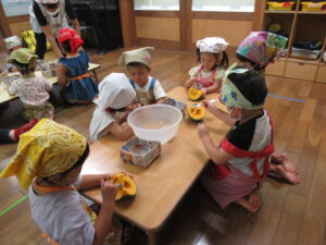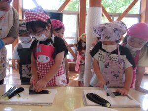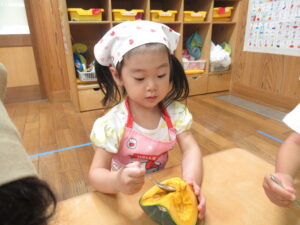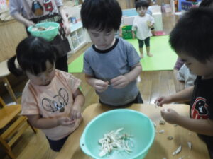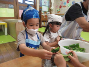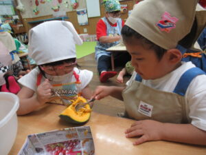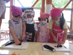 つき組さんは、野菜の皮むきや種取りをします!