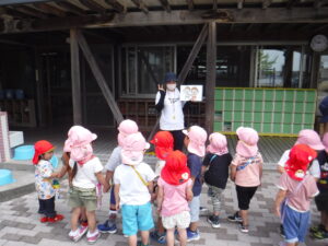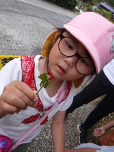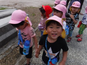 今日は横断歩道を渡る時にハプニング!!靴のマジックテープが気になり途中で止まってしまう子が。一斉に渡れず、2回に分かれて渡りました。気を付けようね。