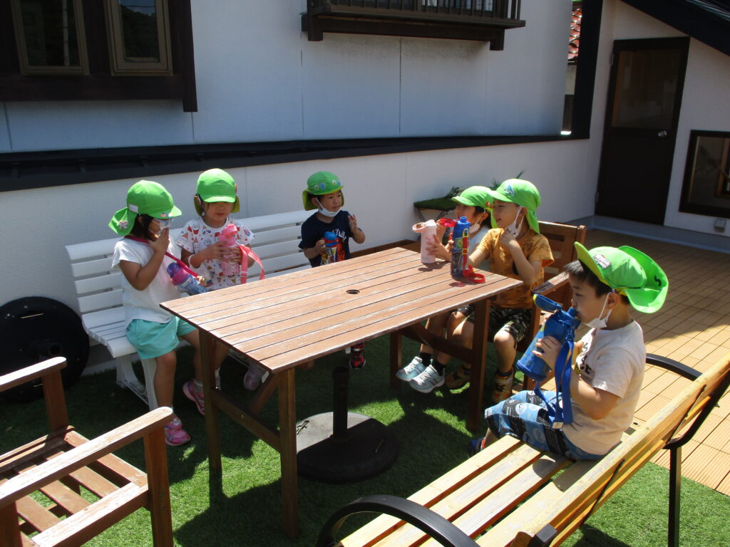 ヒミツの階段を上ると、きれいな展望テラスが!「みんなでおちゃのも~」と気持ちいい空の下で休憩。