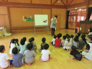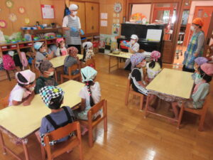 ぞう組きりん組は、かしわもちとは何か、どうしてかしわもちを作るのかの話を聞きました