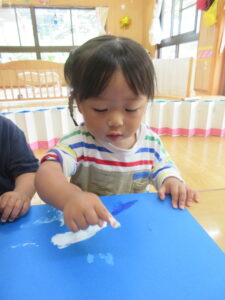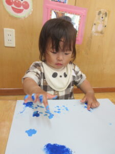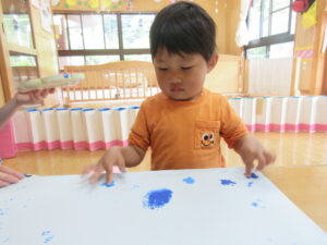 今日はえのぐを直接触って 画用紙に指で色をつけます。