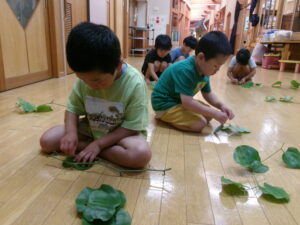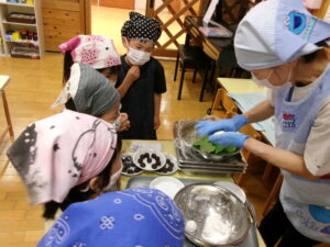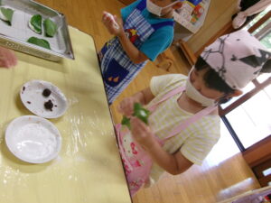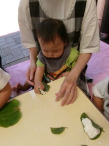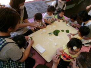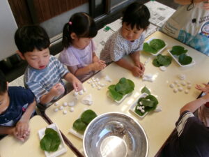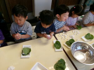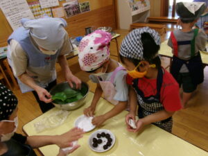 ぞう組はかしわ餅づくり。