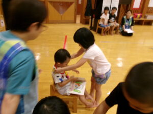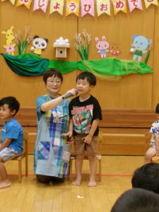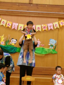 ♪たんたんたんじょうびのうたを歌うときに、抱っこしてもらいます。