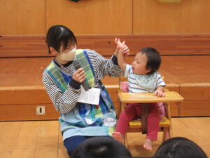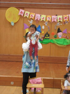 の歌に合わせて たかいたかーい をするとにこにこです。