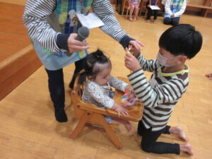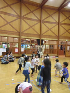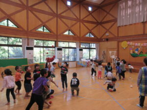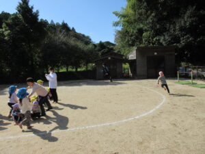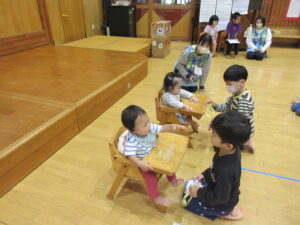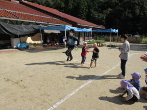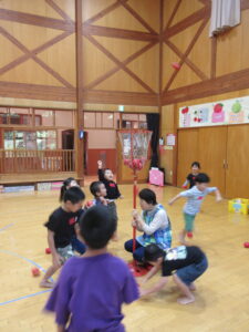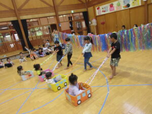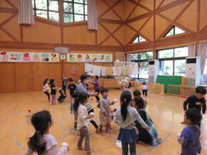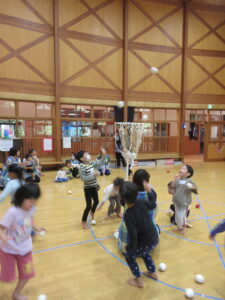 うさぎ、ぱんだ、きりん、ぞう組の子ども対先生で勝負しました。