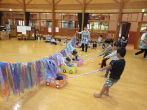運動会ではおとうさんおかあさんに引っぱってもらったね。