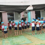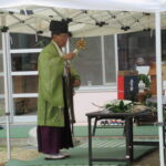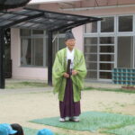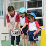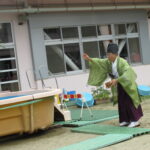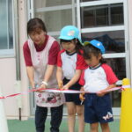 6月27日(火)、売豆紀(めづき)神社の宮司様にプール遊び・水遊びの安全祈願をしていただきました。暑い中でしたが、全クラスの子どもたちが参加し、「何ていってるのかなぁ・・・?」と聞きなれない神様ことばに耳を傾けていましたよ。就学前児の代表児による玉串奉納、テープカットも行いました。いよいよ来月からプール遊び・水遊びを始めます。