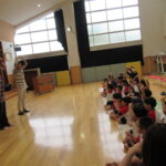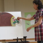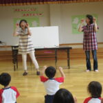 お話とお話の合間にも楽しい歌や手遊びをして下さり、子どもたちも夢中で聞いたり、歌ったりと時間があっという間に過ぎていきましたよ。