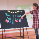 まずは、パネルシアターを使ってみんなで♪たなばたさまの歌を歌いました。ブラックパネル上に笹の葉がさらさら~、星がキラキラ~ととってもきれいでした。ピアノの伴奏や効果音に合わせて大型絵本を読んでくださったり、紙皿を使って風船が果物や生き物にかわるお話、トンネルをくぐると乗り物がどんどん変わっていくお話など盛りだくさん。