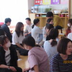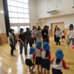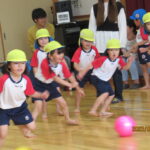 5月27日(月)、ひまわり組の保育参観がありました。今年は31名の大所帯。そんな中でも登園した子からさっと身の回りの準備を済ませ、グループごとに並ぶ姿に参観の保護者さんからは「さすが就前になると違うね~」「大きくなったよね~」という声が聞かれましたよ。この日は最近夢中で遊んでいる『転がしドッチボール』を親子で楽しんでもらいました。我が子を狙ったり、狭い中を必死で逃げたり、転がしなのに思わず力が入って投げてしまったり・・・。子どもたちに負けじと本気モードの保護者さんでした。徐々に疲れが見られる保護者さんとは反対に「まだまだやれる!」「もう一回しよう!」と元気すぎる子どもたちでしたよ。