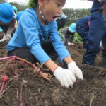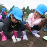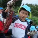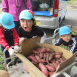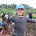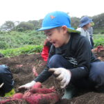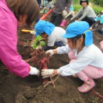 なかなかおいもが姿を見せず、あきらめかける子もいましたが、土の中から紫色の頭がちょこっと見えると一気にやる気モードになりましたよ。