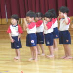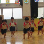 続いてかけっこです、「ヨーイドン!」の合図で走ります。最近では、ただ走るだけでなく色々な物に変身して走る事も楽しんでいるばら組さん。犬や猫、鳥になって走りましたよ。