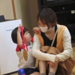 初めに大好きな『エビカニクス』を踊りました。元気よく「エビ! カニ!」とノリノリでしたよ。そのあとはお父さん、お母さんも一緒に踊りました。