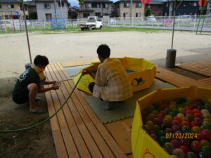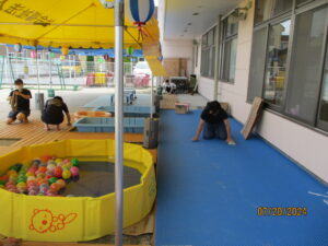 2024.07.29 親子夏まつり~事前準備 午前・午後の部~ 7月20日(土)は、親子夏まつりを開催しました。 子どもたちの喜ぶ顔が見たい、楽しませたい、盛り上げたいとたくさんの保護者の方々が協力して下さいました。 おまつり準備の一方で暑い中、園庭や畑の草刈もしてくださいました。こうした保護者の方のお力があり、子どもたちの充実した体験活動ができることに感謝です。 < 前の記事へ | 次の記事へ >