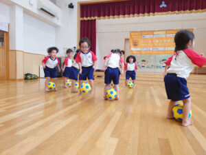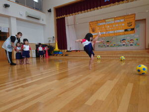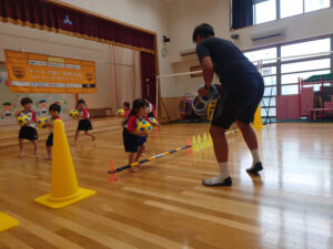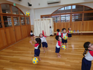 8月19日は、ばら組さんが“ふなちゃん”とボールを使ってたくさん体を動かして遊びましたよ。