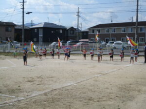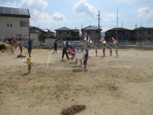 周りでは、1歳児のれんぽぽ組さん、2歳児のさくら組さん、3歳児のばら組さん、4歳児のきく組さんが見ているのでかっこいいというところを見せようと表情もきりっとしていましたよ。
