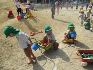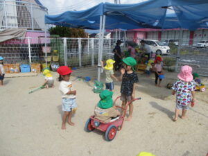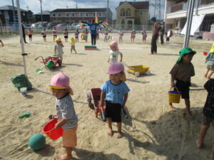 今日から10月スタート!!午前中は、陽が出ていて暑いぐらいでした!!ただ、ふわぁ~っと風が吹くと「わぁ~気持ちいいね~!!」と秋の風の心地よさを感じ、子どもたちと笑い合っていましたよ。