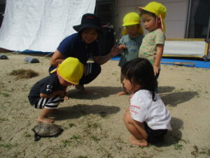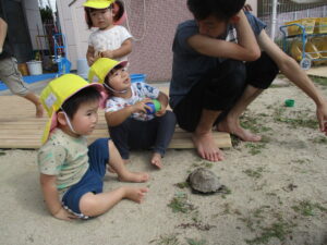 ひまわり組で育ている‘‘うらしまたろうさん”🐢ひなたぼっこ中。