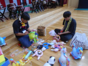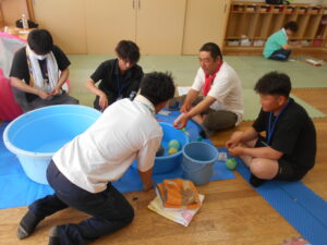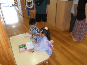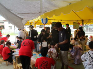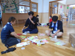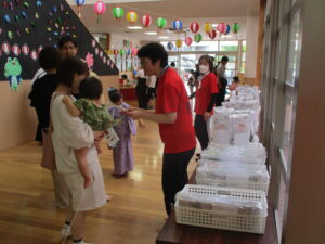 保護者の方とお話しながら、夕方の時間に行うおまつりの準備(^^)/