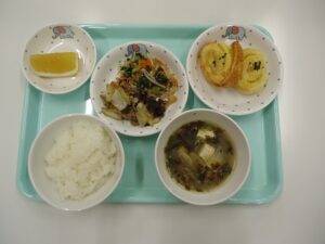 2022.05.20 5月20日(金) 今日の給食 5月20日(金)今日の給食は、 ごはん・牛肉のスタミナ炒め・塩ナムル・なめこ汁・みしょうかん(美生柑) でした。 おやつは、スイートポテトパイ でした。 スイートポテトパイは、うずまきの形で、カタツムリみたいって、子どもたちが喜びました。 < 前の記事へ | 次の記事へ >