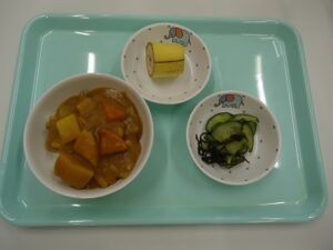 チキンカレー・きゅうりの塩昆布和え・バナナ でした。