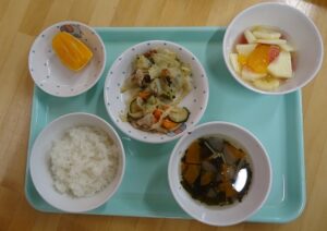 2022.07.05 7月5日(火)今日の給食 7月5日(火)今日の給食は、 ごはん・回鍋肉・梅ドレッシングサラダ・わかめスープ・オレンジ でした。 おやつは、フルーツポンチ でした。 < 前の記事へ | 次の記事へ >