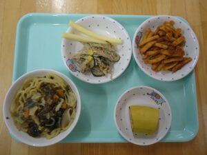 わかめラーメン・チーズ・ごぼうとコーンのサラダ・バナナ でした。