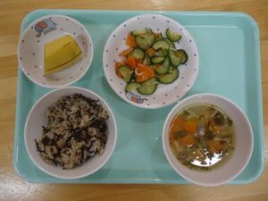 2022.07.30 7月30日(土)今日の給食 7月30日(土)今日の給食は、 ひじきご飯・しらす和え・人参の味噌汁・バナナ でした。 おやつは、クラッカーサンド でした。 < 前の記事へ | 次の記事へ >