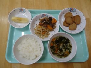2022.08.10 8月10日(水)今日の給食 8月10日(水)今日の給食は、 ごはん・牛肉と蓮根の炒め物・切り干し大根煮・わかめスープ・りんご でした。 おやつは、きな粉サブレ でした。 < 前の記事へ | 次の記事へ >
