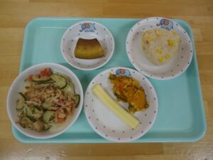 2022.08.12 8月12日(金)今日の給食 8月12日(金)今日の給食は、 冷やしうどん・かぼちゃのそぼろ煮・チーズ・バナナ でした。 おやつは、とうもろこしバターおにぎり でした。 < 前の記事へ | 次の記事へ >