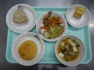 豆乳かぼちゃパン・かれいの香草焼き・きのこソテー・豆腐スープ・バナナ でした。