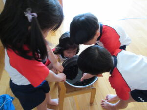 保育園に帰ってしじみの観察 「なんか出てきたよ」