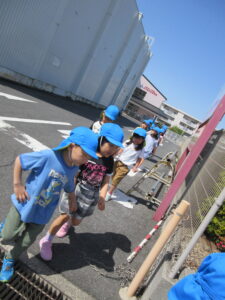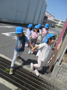 4月19日、ひまわり組の子どもたちはお散歩に出かけました。保育園の周りをぐるっと。