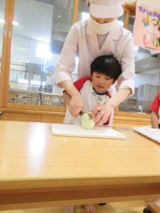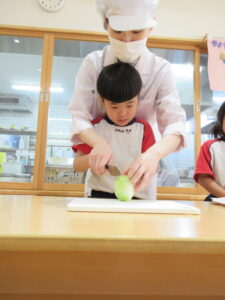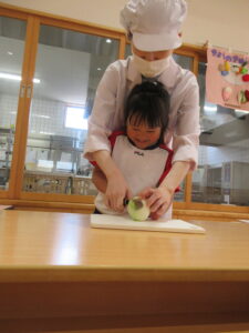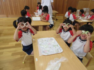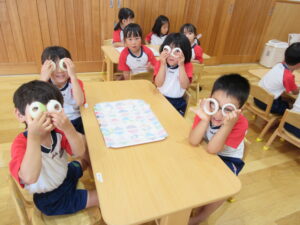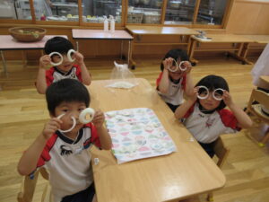 みんなで作ったオニオンリング、カリッと揚がっておいしかったね。新玉の甘みも感じられました!!