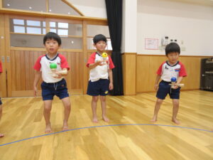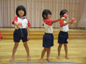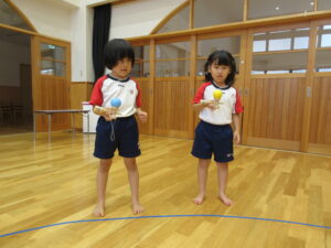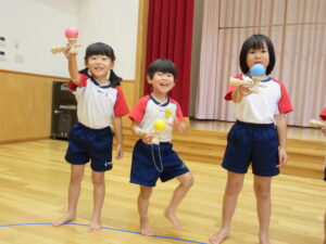 けん玉はとっても難しいけど、あきらめずに繰り返し繰り返し取り組みました。なかなかできなくて悔しい思いもしました。でも、できた時はとっても嬉しくて、キラキラの笑顔を見せてくれました。