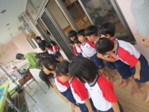 大雨だったので、ひまわり組のお部屋に集合しました。