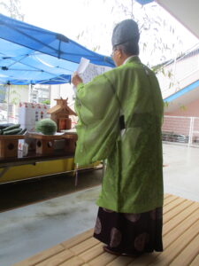 今年も安全にプール遊びができるよう、神様に神様ことばでお願いしてくださった宮司さん。