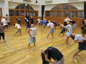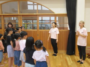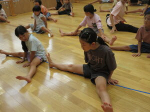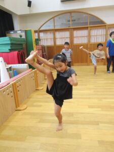 まずは柔軟。こずこずさんとみのりさんの体の柔らかさに感動!!子どもたち、先生たちは…「ゔ~💦」声にならない声が聞こえてきました。