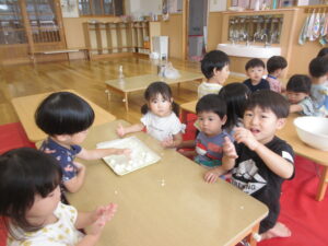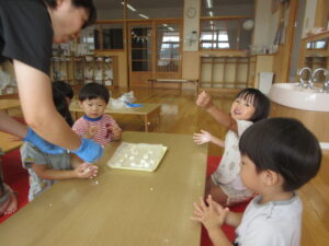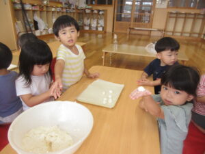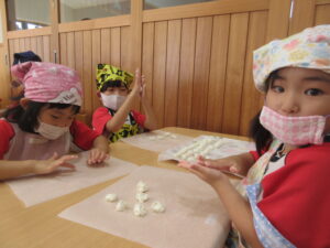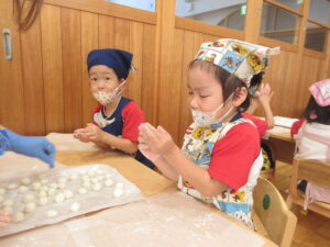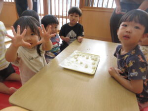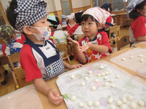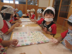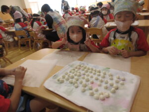 2024.09.21 お月見団子を作ったよ🌕☆さくら~ひまわり組(9/17) 今年の中秋の名月は9月17日。たくさんのおいしい食べ物が食べられることへの感謝と、これからもおいしい食べ物が食べられますようにと願いを込めて、コロコロとお団子を作りましたよ。 この日のおやつはもちろんお団子。みんなで作ったお団子は一段とおいしかったですね!! 夜はお家の方と一緒にお月見を!!お月様の光をいっぱい浴びてパワーUPです🌕 < 前の記事へ | 次の記事へ >