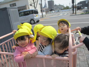 今日はいい天気🌞たんぽぽ組さんは散歩車に乗ってお散歩に出かけました。