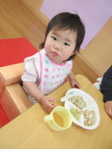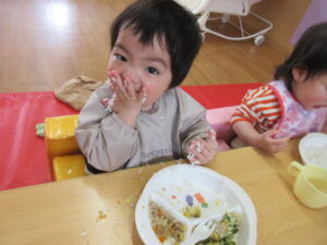 お友だちのことも気になって、一緒に「かんぱ~い」したり、パチパチ拍手したり…