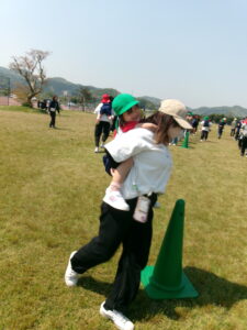 次は… クラス対抗 おんぶリレー